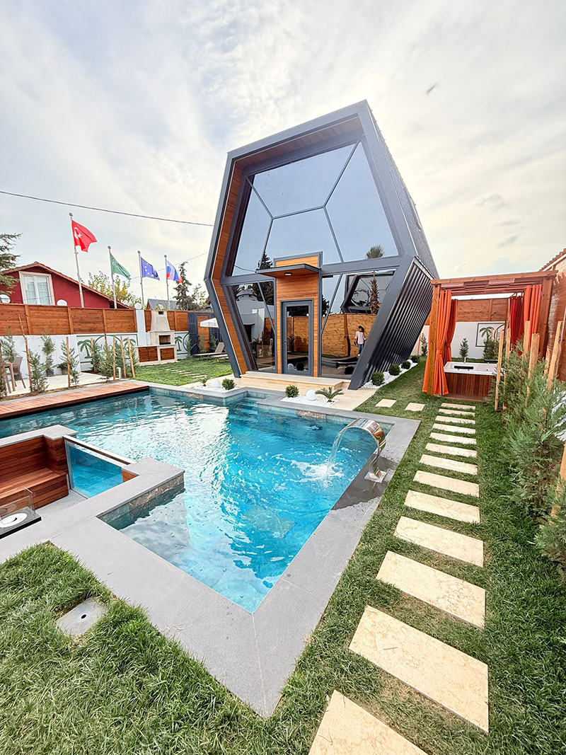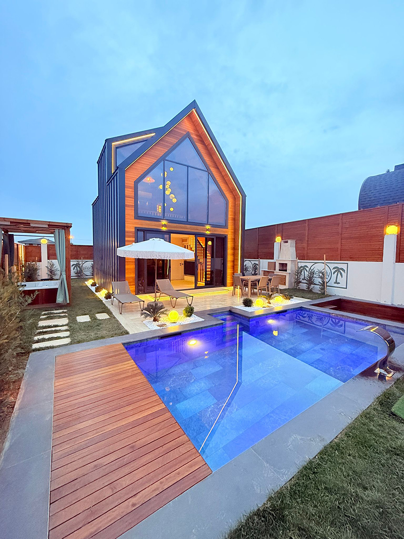 Proje, standart prefabrik bungalov anlayışının ötesinde; betonarme havuzlar, kalıcı yapısal çözümler ve uzun ömürlü malzemelerle hayata geçirildi. Her bir ünite, villa konforu hedeflenerek planlandı.